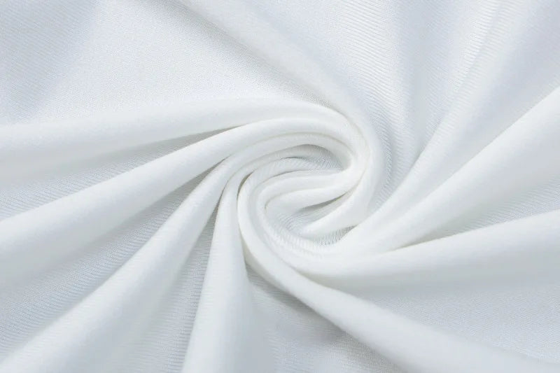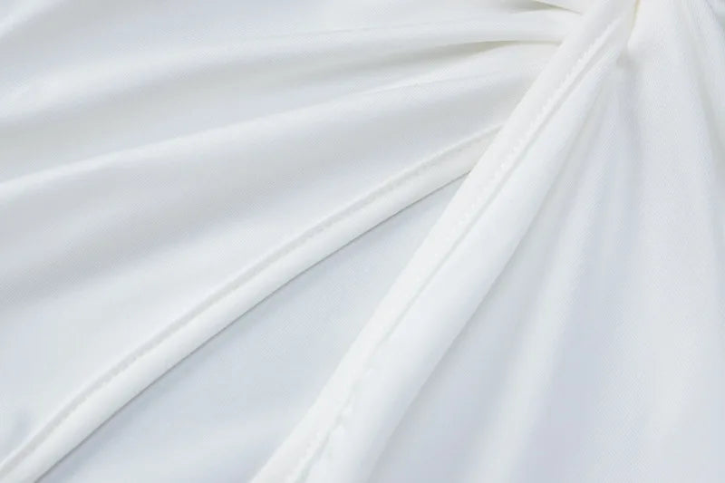 One of our most elegant pieces. This white matching skirt and crop top is ready for your next warm weather adventure. The white crop top, and matching white skirt would make a great tropical wardrobe selection.
