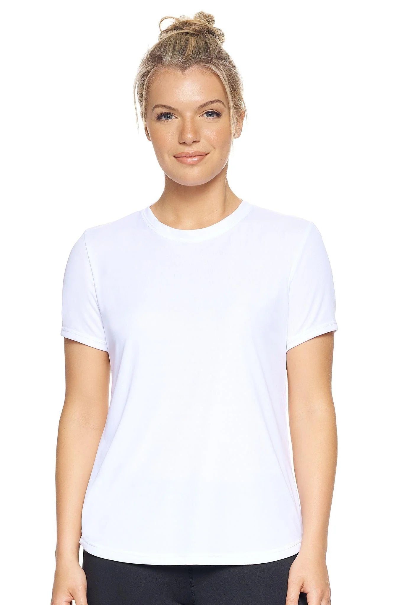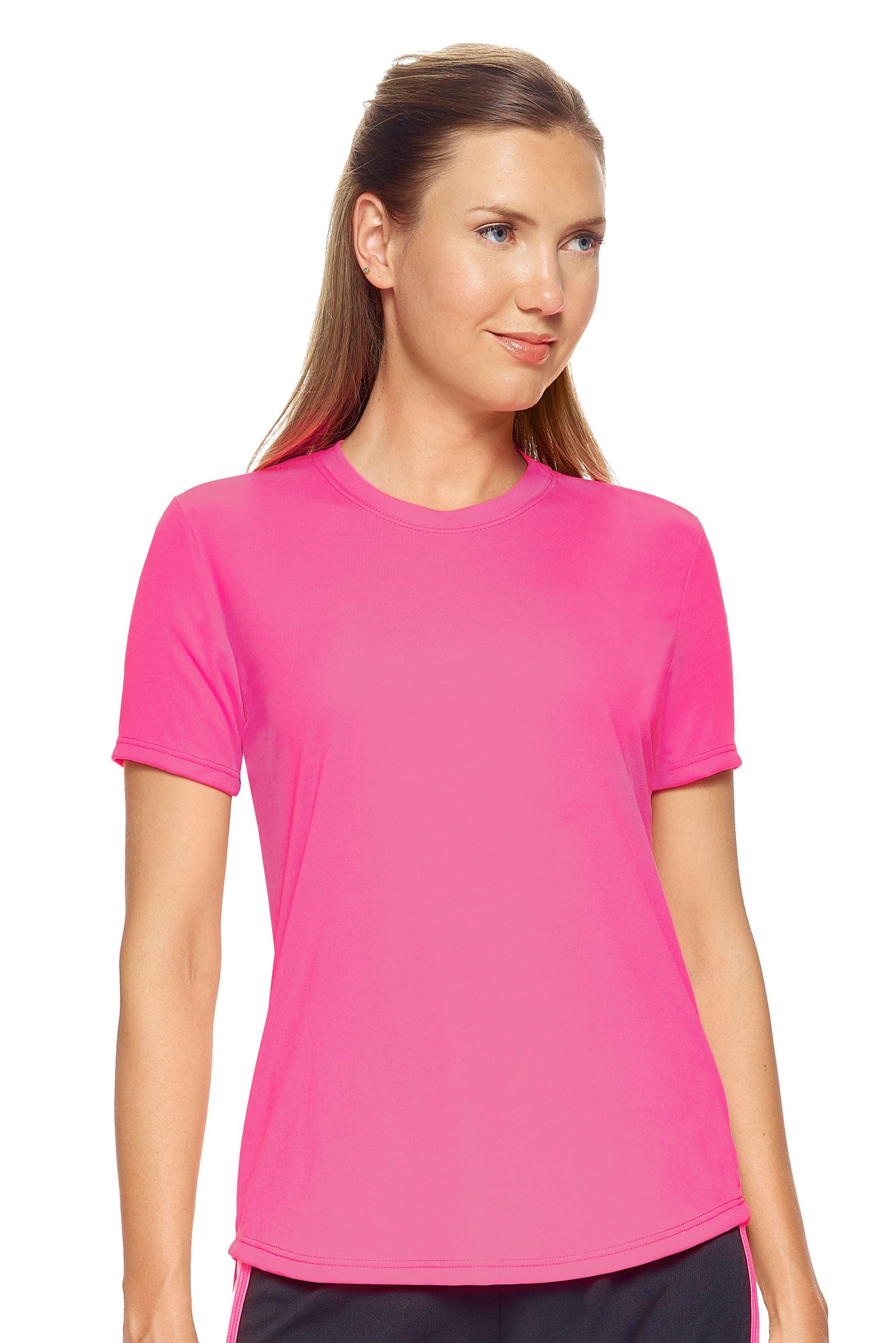 Experience the best in performance and comfort with our Women's USA Made Short Sleeve Shirt. Trusted by professional athletes and the U.S. Armed Forces, our lightweight fabric is designed to keep you cool, dry, and odor-free during high endurance workouts. Featuring a relaxed feminine fit and smooth seams, you'll stay comfortable and stylish all day long. Made with 100% microfiber polyester DriMax™ interlock knit in the USA.