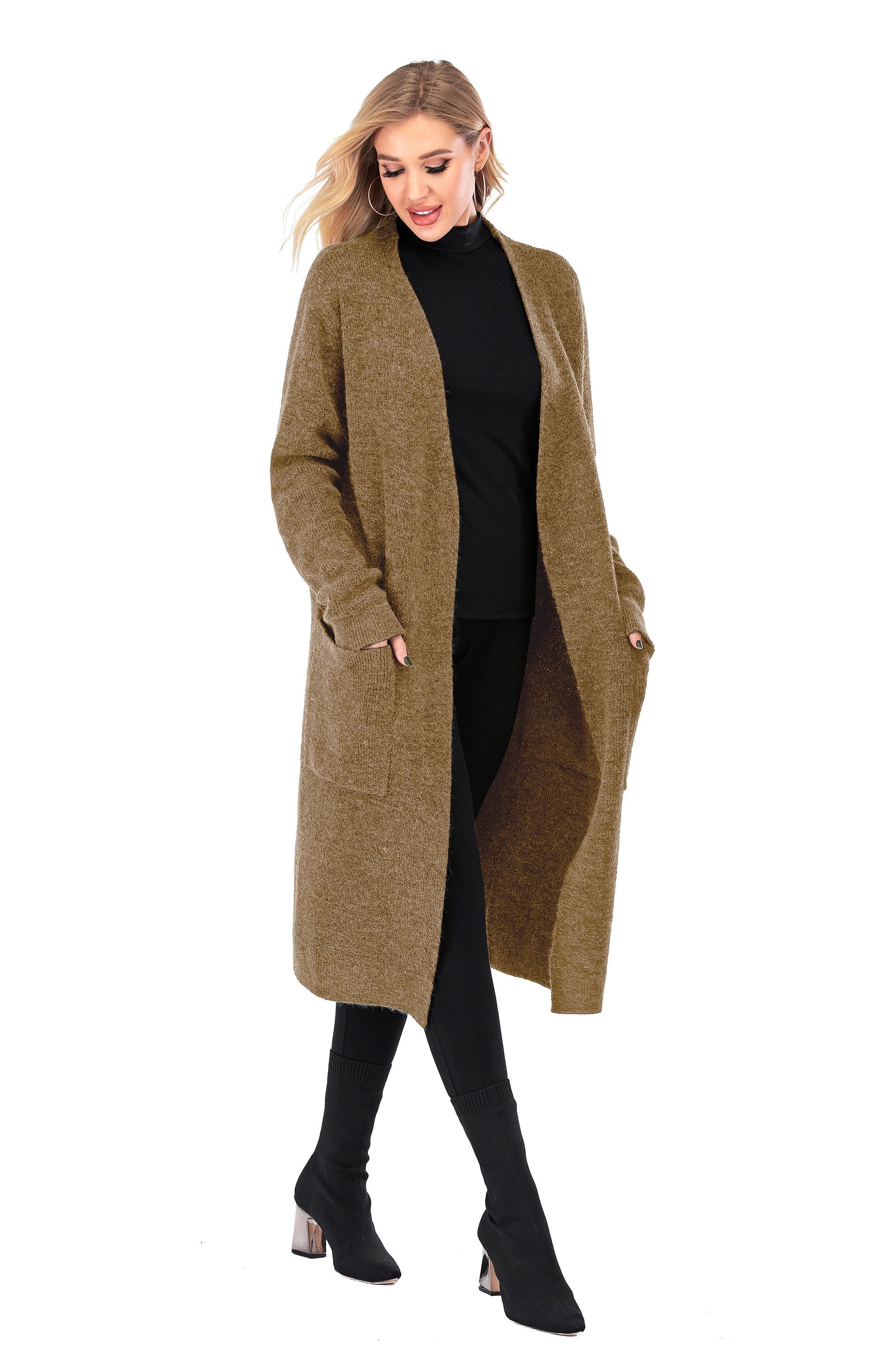 This Plain Women's Wool Open Front Cardigan with Pockets is a great one base color style selection. Perfect for the fall and winter months, this long women's cardigan is perfect for your daily or evening outings, formal or informal. This cardigan is an essential style choice that will surely bring both fashion and comfort with any outfit you choose. The high quality wool and fabric will leave you feeling cozy and stylish with ease. It is perfect for any occasion from casual wear to parties and gatherings with friends. The cardigan is also very lightweight and durable, making it one of the best choices for your next fit. This cardigan is made of wool.