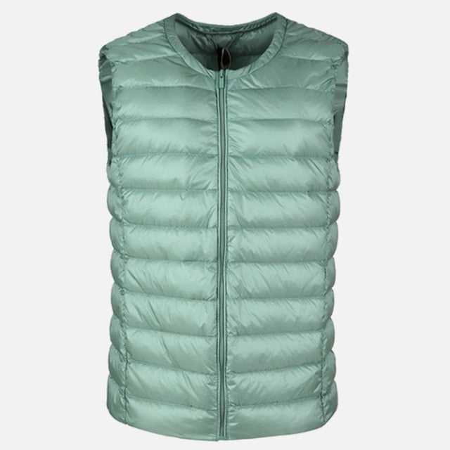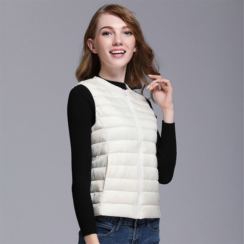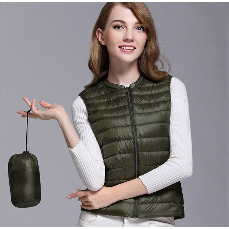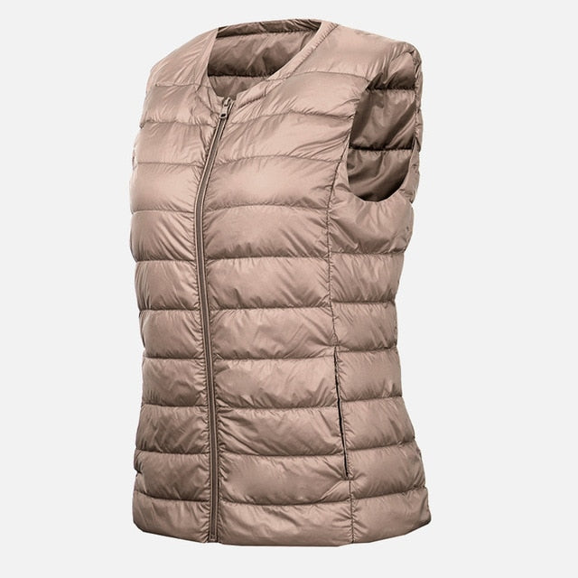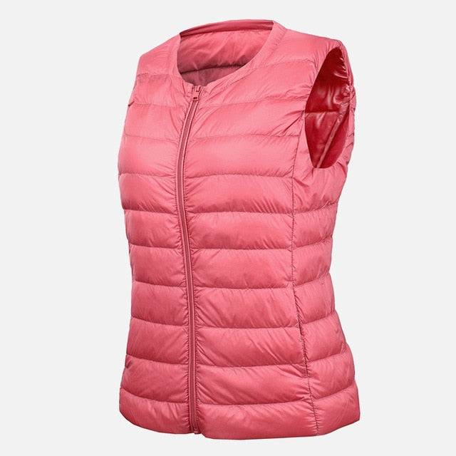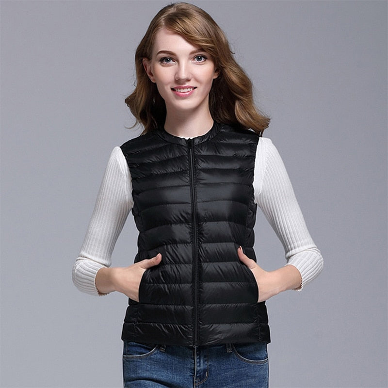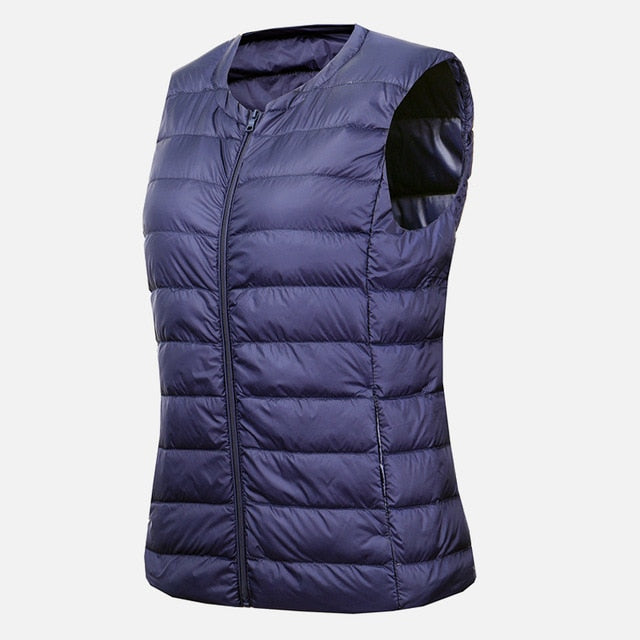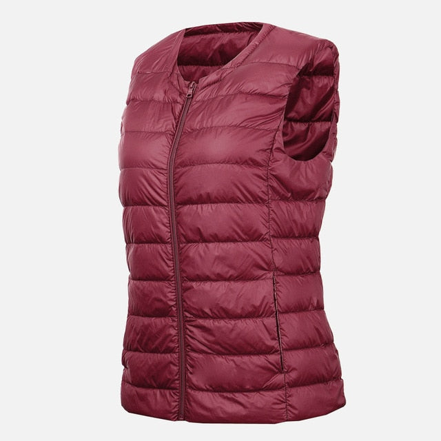 This women's vest is designed with puffer jacket style and performance. Minimal bulk, maximum heat with the plain women's sleeveless puffer vest.