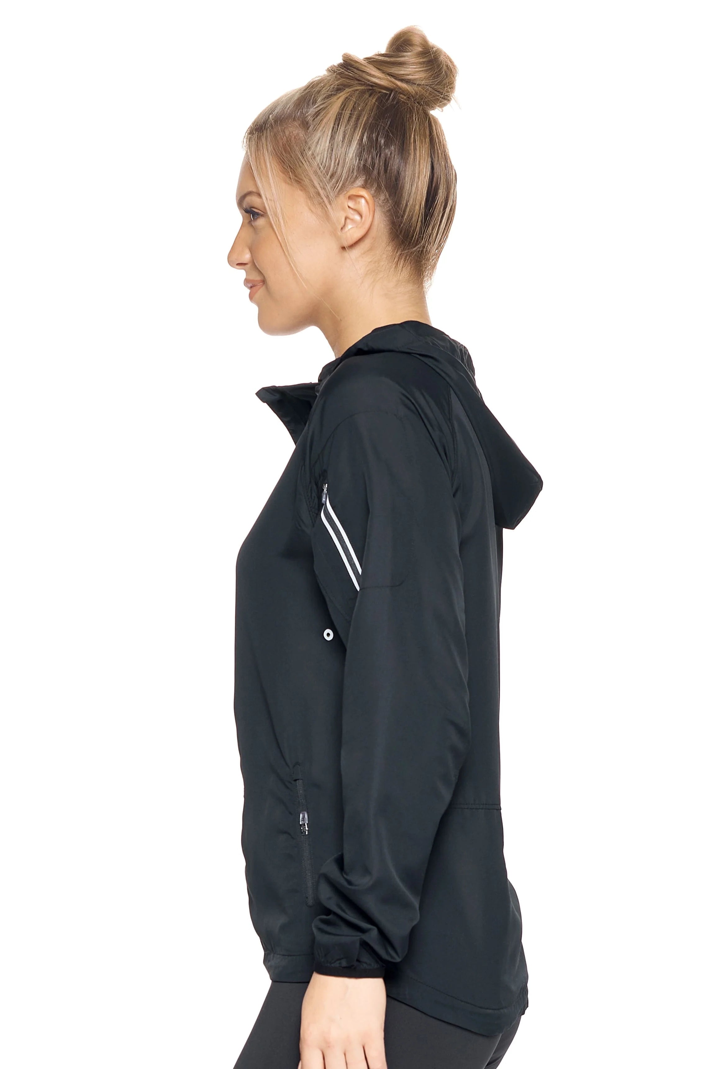 As a product expert, I highly recommend the Women's Black Water Resistant Jacket. This durable and comfortable jacket is perfect for any outdoor activity, with built-in odor control and sweat-wicking technology. Its relaxed fit, adjustable hood, and multiple zipper pockets make it both practical and stylish. Stay visible in low light with its reflective features. Made of 100% microfiber woven polyester.